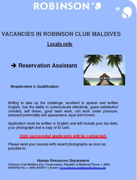 Job Opportunity for Reservations Assistant at Robinson Club Maldives
