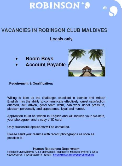 ROBINSON Maldives Jobs