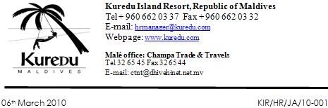 .KUREDU ISLAND RESORT HAS THE FOLLOWING JOB VACANCIES.