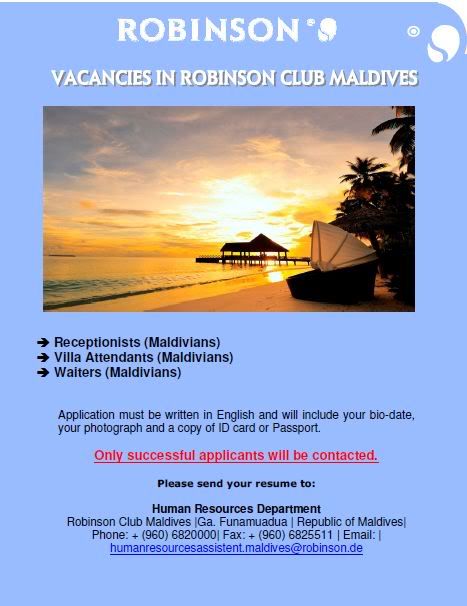 ROBINSON Maldives Jobs