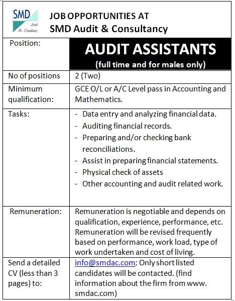 JOB OPPORTUNITIES AT SMD Audit & Consultancy